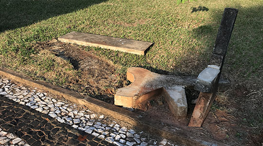 Um terceiro item envolve a recuperação do passeio público em toda a área de circulação da praça, em pontos onde há falhas no pavimento ou danos causados pela entrada de veículos de manutenção, além de bancos, que foram destruídos por vândalos, há bastante tempo, sendo que alguns deles estão com a estrutura no local, aguardando reinstalação.