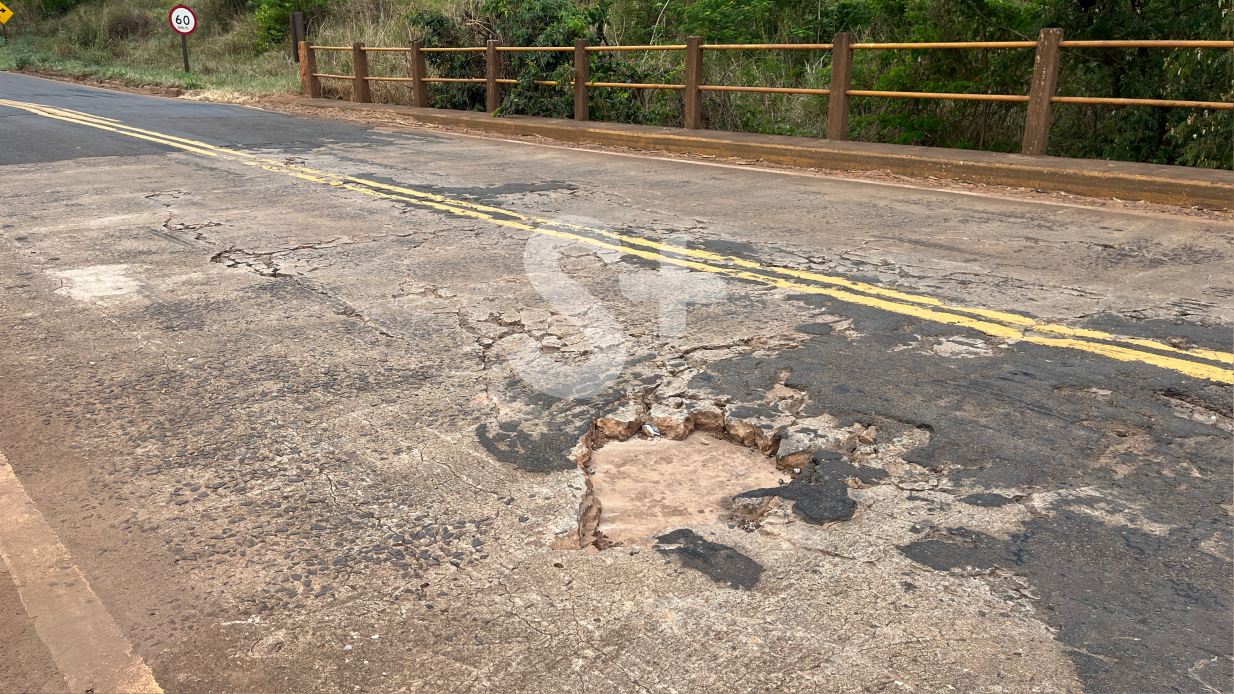 Com buracos no pavimento, quem trafega pela ponte sobre o Rio Aguapeí, na divisa Adamantina/Valparaíso, precisa transitar com atenção redobrada. A condição do local põe motoristas em alerta, sobretudo para quem mantém a velocidade regulamentada para a rodovia e não reduz na passagem pelo dispositivo.