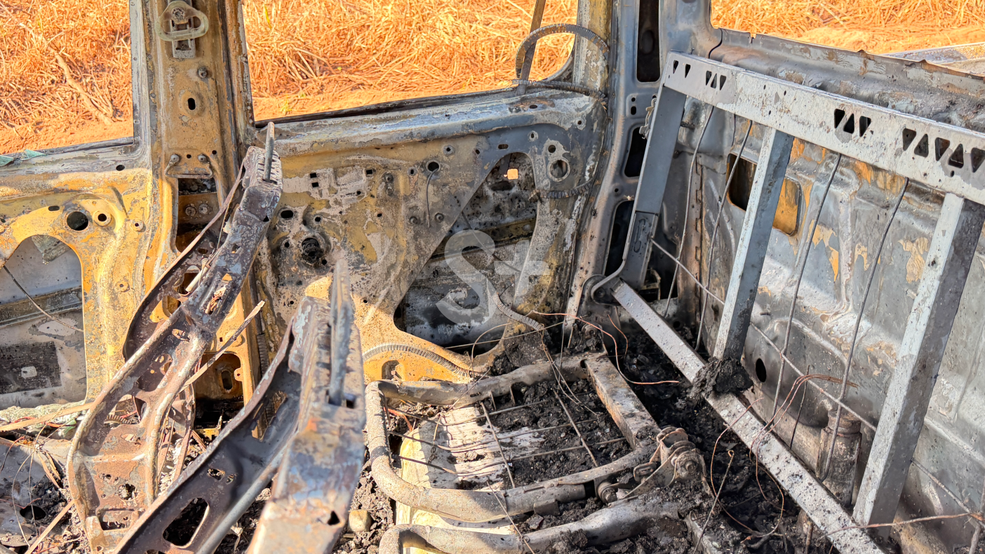 No momento da checagem, por volta das 9h, a reportagem não encontrou ninguém pelo local. O veículo foi encontrado completamente destruído, com sinais recentes de contenção de chamas.