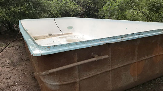 No interior da piscina há acúmulo de água, ambiente propício às larvas do mosquito Aedes aegypti (Foto: Siga Mais).