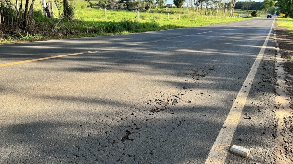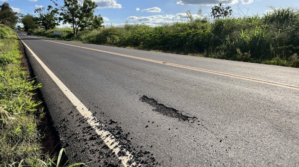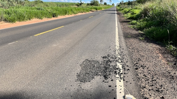 Um dos pontos mais críticos está entre os quilômetros 8 e 9, sobretudo nas proximidades do acesso ao bairro rural Aidelândia. Nas alturas dos quilômetros 5 e 11, há trechos do pavimento que já receberam reparos, em áreas que foram recortadas para reaplicação de massa asfáltica.