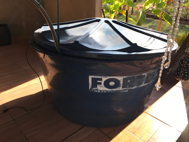 Outro caminho encontrado pelos moradores têm sido buscar água de um vizinho, que gentilmente cedeu. O poço está localizado há cerca de 200 metros da casa onde moram. O direcionamento da água é feito com o uso de mangueira, que leva a água até um reservatório.