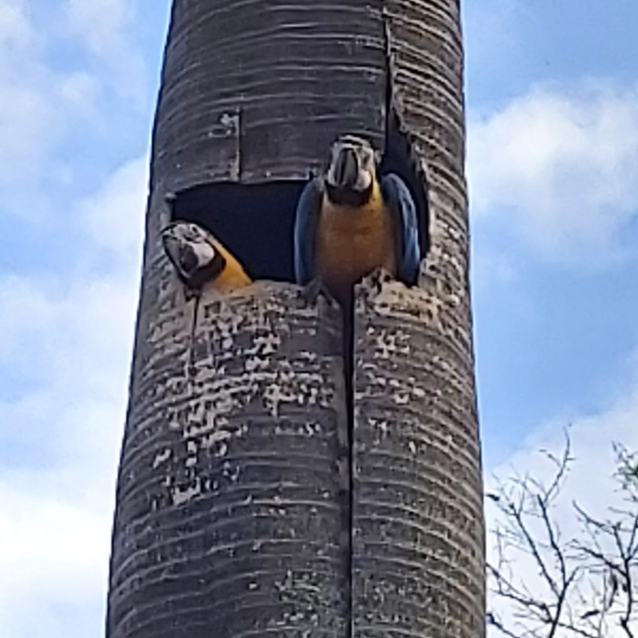 A SAAMA promoveu a abertura de brechas nas palmeiras mortas da Praça Vereador José Parrilla, facilitando a formação de novos ninhos e onde já é possível observar filhotes, vez que as araras-canindé nidificam entre dezembro e maio.