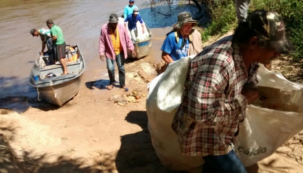 Na operação foram utilizadas seis embarcações e foram retirados seis bags com lixo, recolhidos nas margens e no leito do Rio do Peixe.