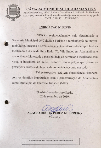 Depois disso, houve a participação do então vereador Acácio Rocha, que mobilizou a representante da ACRE, Noriko Saito, e o prefeito Márcio Cardim. No dia 13 de dezembro de 2018 eles estiveram no templo, acompanhados de representantes nipônicos, onde foi possível avaliar toda a estrutura do salão principal e demais salas que fazem parte do antigo espaço religioso, ficando os encaminhamentos seguintes com a ACREA, sobretudo em torno da doação do prédio ao município.