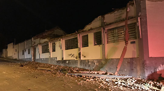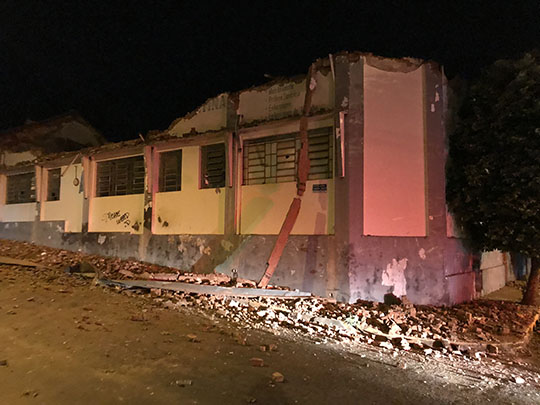 Grande parte da estrutura do prédio do antigo Instituto Educacional Adamantina (IEA) desabou na noite desta quarta-feira (16), pouco ante das 22h. O prédio, que fica no cruzamento da Alameda Santa Cruz com a Rua General Isidoro, sempre abrigou escolas, estava desativado desde o primeiro semestre de 2016, quando a Escola Cristã deixou o local. O Siga Mais transmitiu ao vivo do local (reveja).