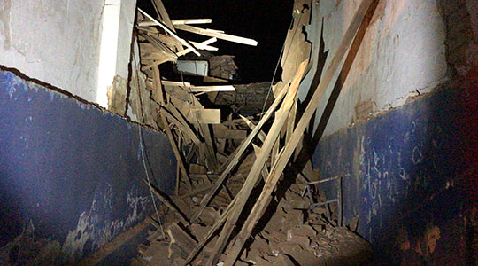 O maior volume detritos cederam no interior do próprio espaço. Já na face do prédio voltada para a Alameda Santa Cruz, houve queda de parte das paredes sobre a calçada. Na face externa da Rua General Isidoro, o material que caiu sobre a calçada é em menor volume.