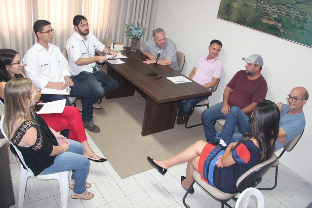 Prefeito em seu gabinete, reunido com engenheiros e demais servidores e responsáveis pelo projeto (Da Assessoria).