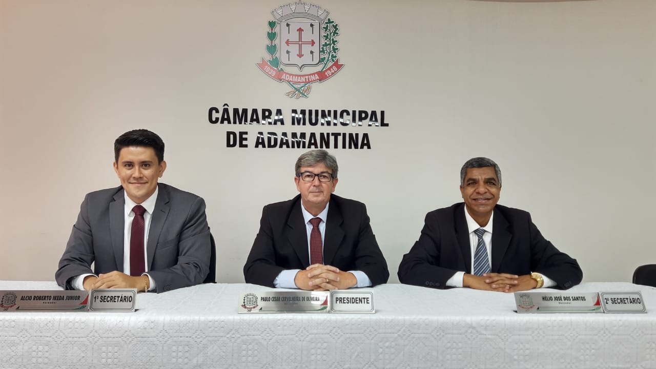 Da nova mesa diretora, presidente Paulo Cervelheira (ao centro) e o 1º e 2º secretários Alcio Ikeda e Hélio Santos (Cedida).