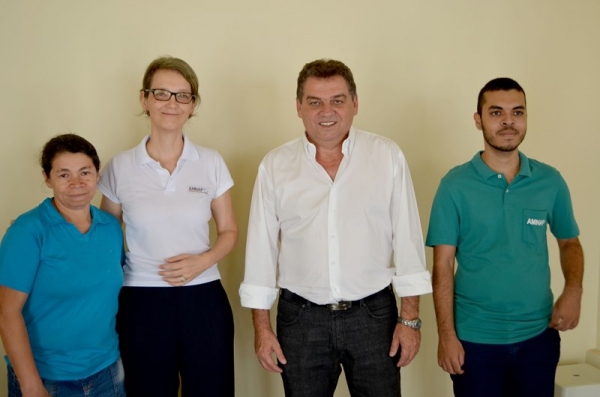 O presidente da AMNAP, Hélio Furini (prefeito de Junqueirópolis), e os prefeitos Ivo Santos (Adamantina) e Ismael Calori (Mariápolis), e a equipe administrativa da AMNAP (Associação dos Municípios da Nova Alta Paulista), receberam a imprensa e colaboradores na manhã de ontem (24), para apresentação de sua nova sede em Adamantina, localizada na alameda Cônego João Batista de Aquino, 554, centro.
