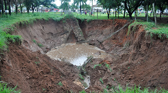 Nova cratera foi aberta com as chuvas desta terça-feira (Foto: Prefeitura de Adamantina).