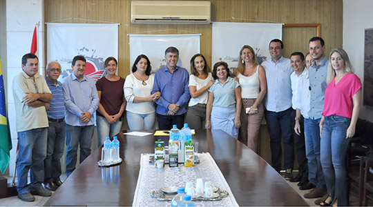 Autoridades no lançamento da programação Adamantina 70 anos, na manhã desta terça-feira (30), no Paço Municipal (Da Assessoria).
