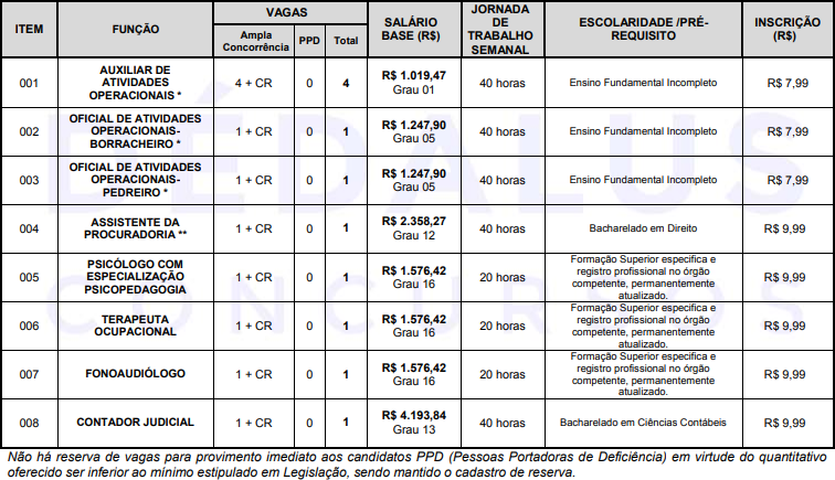 Nos Processos Seletivos as inscrições devem ser efetuadas até as 23h59 do dia 18 de novembro pelo site https://dedalusconcursos.com.br. Haverá obrigatoriamente prova prática para as funções de Auxiliar de Atividades Operacionais, Oficial de Atividades Operacionais-Borracheiro e Oficial de Atividades Operacionais-Pedreiro. Já para a função de Assistente da Procuradoria haverá prova escrita. (Continua após a publicidade...)