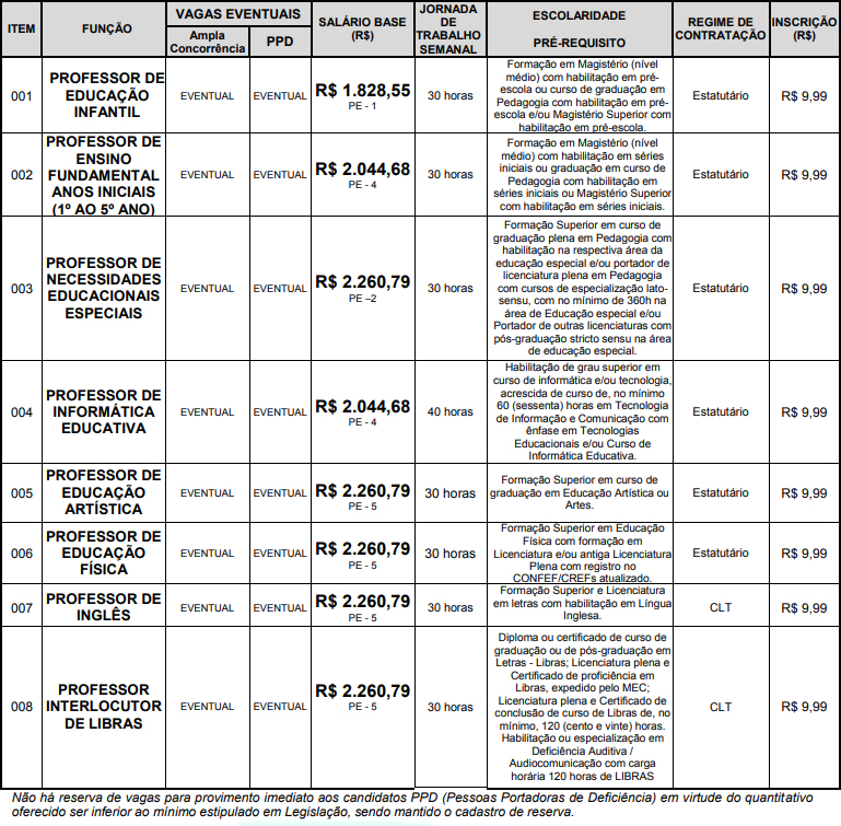 Todos os editais estão disponíveis no site da empresa Dédalus Concursos. O valor da taxa de inscrição vai de R$ 7,99 até R$ 9.99. O boleto da inscrição dos processos simplificados deve ser pago até o dia 19 de novembro e do concurso público até dia 26.