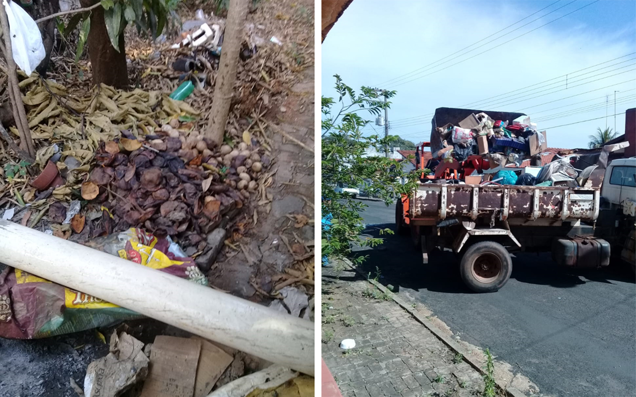 A Vigilância Sanitária e o Setor de Controle de Vetores com apoio das secretarias municipais de Operações Urbanas e Assistência Social fizeram a limpeza em um imóvel localizado na esquina da Avenida Max Wirth com a Rua Dr. Taves e retiraram aproximadamente 30 mil quilos de lixo (materiais inservíveis).