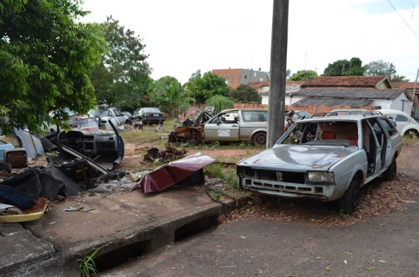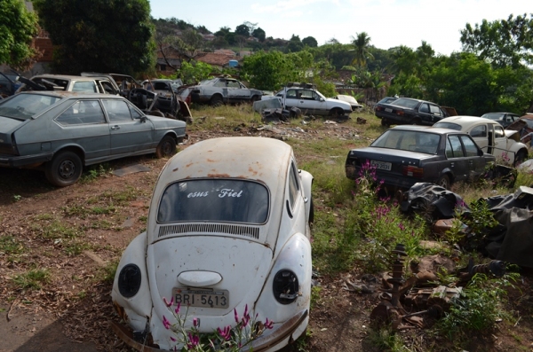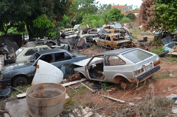 Carros fora de uso depositados em terreno e em via púbica começam a ser removidos.