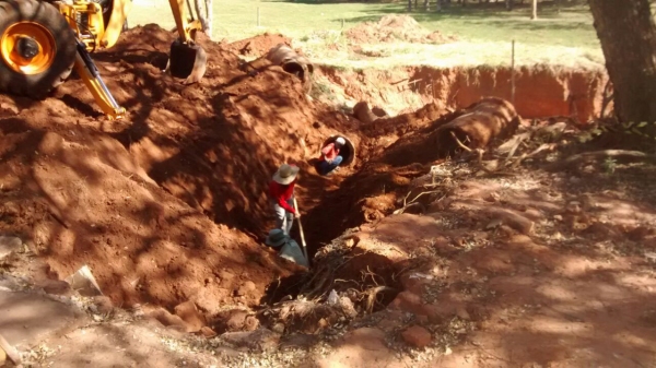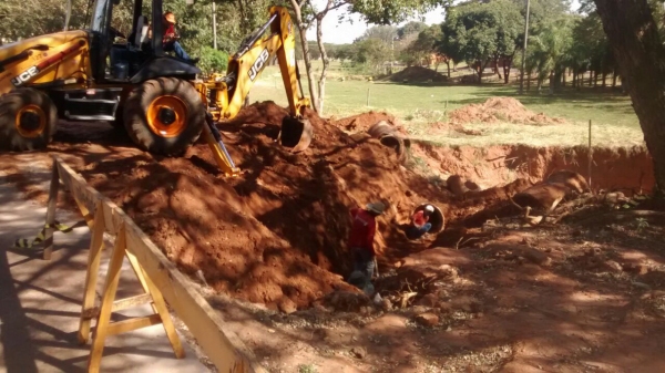 Equipe da Secretaria de Obras da Prefeitura de Adamantina rem realizado reparos na seção de tubos de concreto no Parque dos Pioneiros, altura da rua Sebastião Rombaldi, para sanar os problemas que recentemente surgiram no local. O trecho alvo dos reparos fica próximo ao banheiro público do Parque.