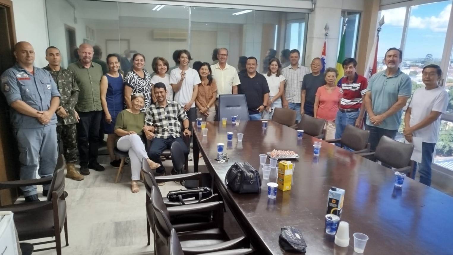 Yudai Tanaka chegou a Adamantina nesta sexta-feira (6) e foi recebido no Paço Municipal pelo prefeito José Carlos Tiveron, secretários municipais, representantes da Acrea, vereadores, além de membros do Corpo de Bombeiros, Exército Brasileiro e lideranças da comunidade.