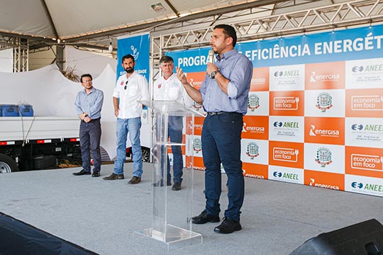 “A Energisa Sul-Sudeste realiza diariamente podas em árvores próximas ou em contato com a rede elétrica para evitar interrupções de energia durante temporais. Os galhos cortados são triturados logo após a poda, e o resíduo gerado após esse processo ganhou uma utilidade mais sustentável, ele será incorporado aos resíduos das escolas, e após a compostagem, será destinado para as famílias. Por isso entregamos para o município um caminhão, um compostador e um trator. Com esses equipamentos o trabalho poderá ser executado da melhor forma pela Secretaria de Agricultura e Meio Ambiente da cidade”, destaca Thiago Peres de Oliveira, especialista em Eficiência Energética da Energisa e um dos responsáveis pelo projeto.