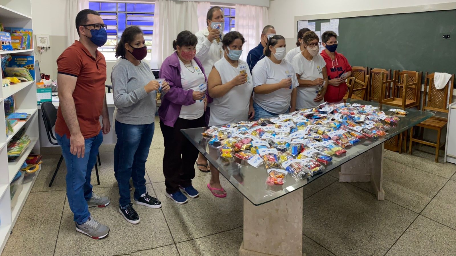 “Fracionamos as 200 caixas de chocolate em saquinhos com cinco bombons cada, totalizando 595 doações”, explica a pró-reitora de Extensão, Prof.ª Dra. Liliana Martos Nicoletti Tóffoli.