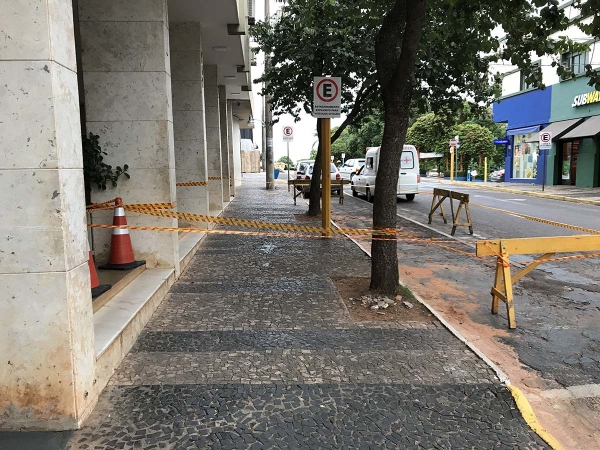 Em nota, a Prefeitura esclarece que optou pela interdição da calçada do Paço Municipal com o objetivo de resguardar a segurança dos munícipes, uma vez que existem lajotas da fachada que estão se desprendendo.