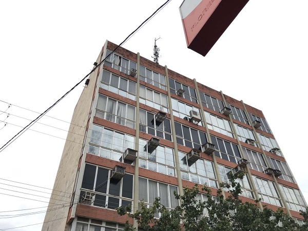 O perigo vem do alto: houve queda de revestimento do prédio de seis andares.