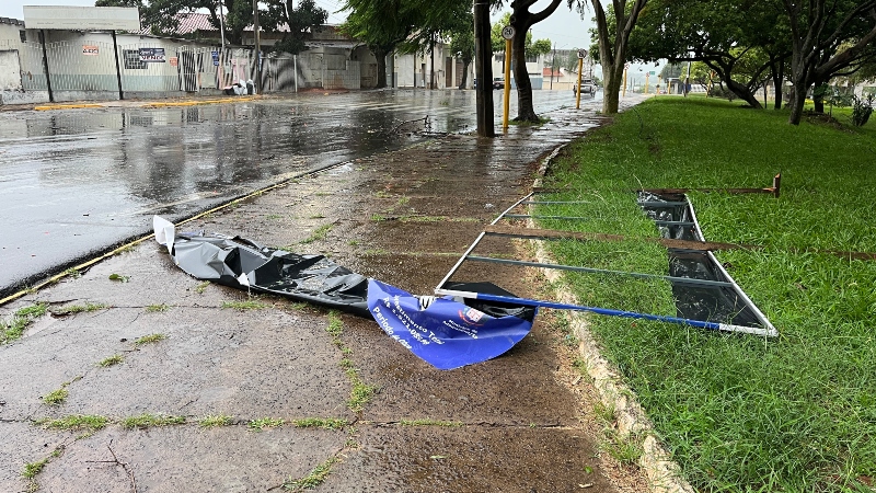 Queda de placa na Avenida Antônio Tiveron (Foto: Siga Mais).