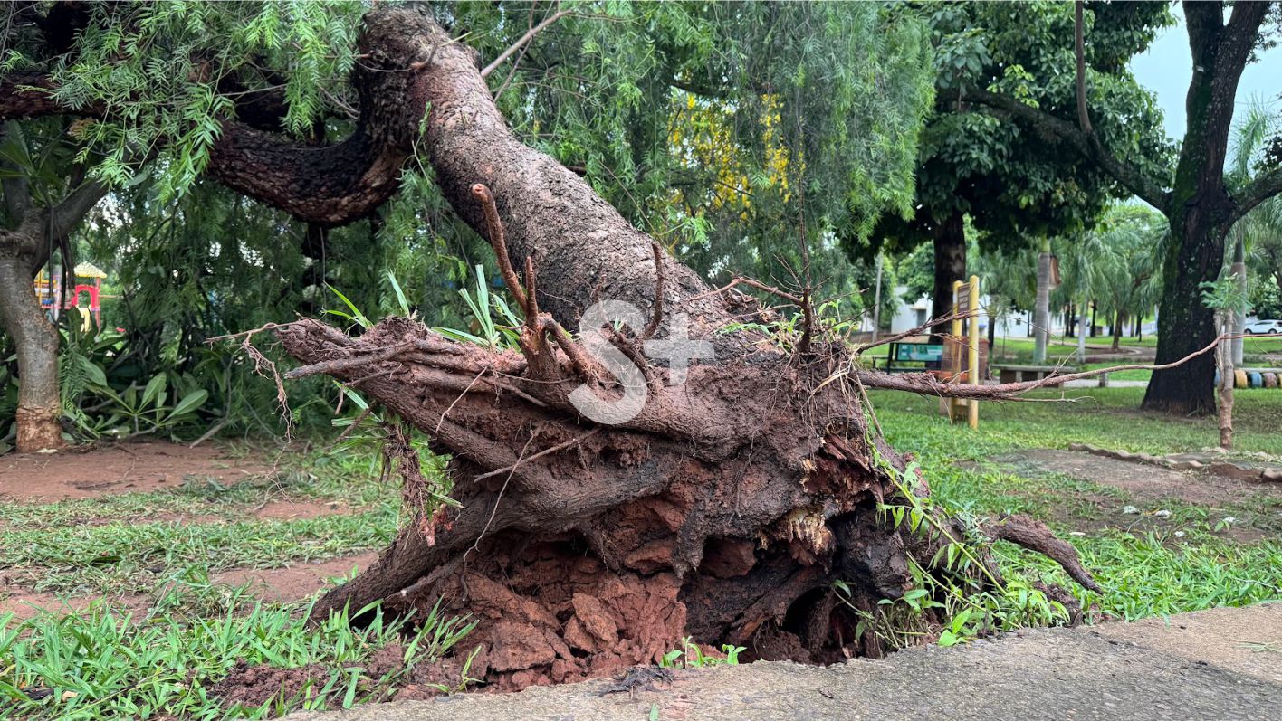 Em outros pontos da cidade também foram registradas quedas de árvores, como no Parque Caldeira. Uma árvore tombou. Outras de pequeno porte, e galhos, também caíram. Um fio da rede de média tensão foi rompido e uma equipe da concessionária Energisa e da Polícia Militar estavam pelo local à tarde. A fiação foi isolada.