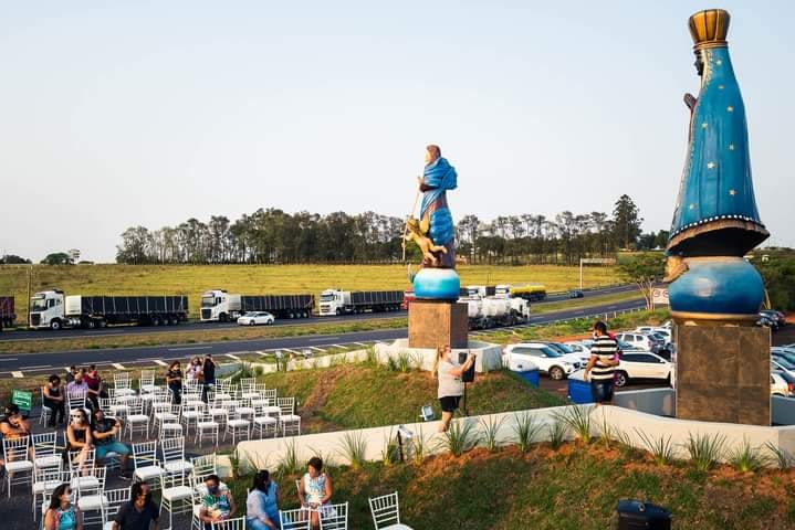 A cerimônia de inauguração e consagração do local aconteceu na tarde de ontem, reunindo um celebrante católico, os idealizadores – identificados por Monteiro e Pedro Sarkis Mezher (Pedro Conti Ponta-Porã/MS) – seus familiares, amigos e a comunidade, além de usuários da SP-425 que já pararam pelo lugar. (Continua após a publicidade...)