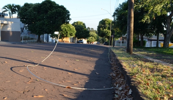 Cabo rompido está sob a via pública. SIGA MAIS acionou concessionária pelo call center.