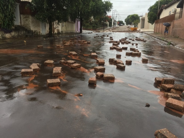 Rua 9 de Julho tem pedras arrancadas pela enxurrada
