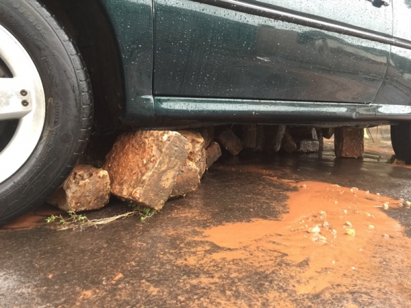 Em alguns locais a profundidade dos buracos, decorrente das enxurradas, chega a quase 1 metro, deixando casas isoladas, impossibilitando a entrada e saída de veículos das garagens.