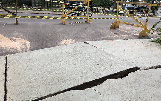 No local já havia afundamento, que foi acentuado nos últimos dias. Prefeitura sinalizou trecho.