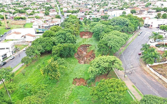 Crateras no Parque dos Pioneiros revelam tamanho do problema (Foto: Cedida/Polícia Militar).