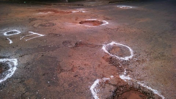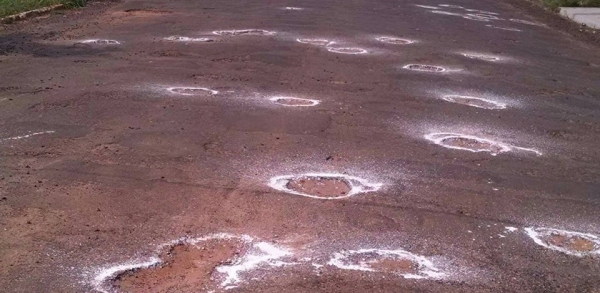 Ruas de Dracena amanhecem com buracos demarcados com tinta branca