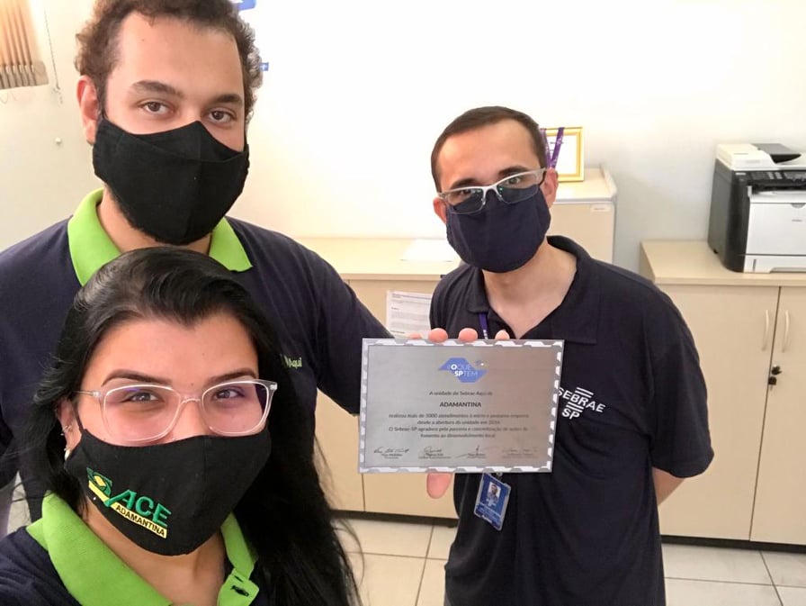 Luís Gustavo Esse, Rafaela Ganacin Torturelo e o analista de negócios do Sebrae-SP, Ayslan Cavalcante Peloso (Divulgação).