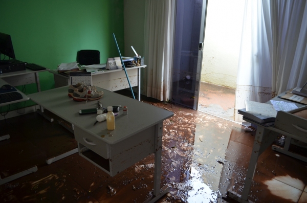A sede do Conselho Tutelar de Adamantina, localizada na rua Fioravante Spósito, foi invadida pelas enchentes na madrugada de hoje (25). As águas invadiram todas as dependências do lugar, danificando móveis, equipamentos de informática, de telefonia e eletrodomésticos, como geladeira e fogão.