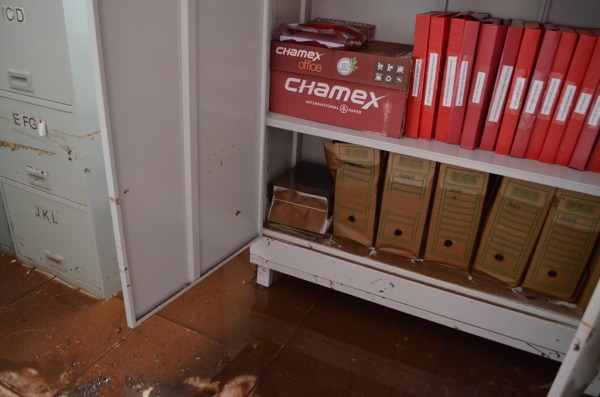 Outro prejuízo verificado pela manhã se refere à integridade dos documentos. Aqueles arquivados nas partes mais baixas dos armários foram atingidos pelas águas, que alcançou, também, as gavetas das escrivaninhas. O carro do Conselho Tutelar também foi parcialmente tomado pelas águas.