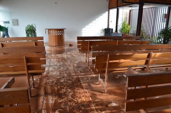 A enchente na região da Rua Fioravante Spósito atingiu também muitas casas no entorno, que foram invadidas pelas águas. Agora pela manhã, muitos moradores realizavam a limpeza, na tentativa de recuperar ou minimizar os danos. As águas atingiram também uma igreja evangélica existente nas proximidades do Conselho Tutelar.