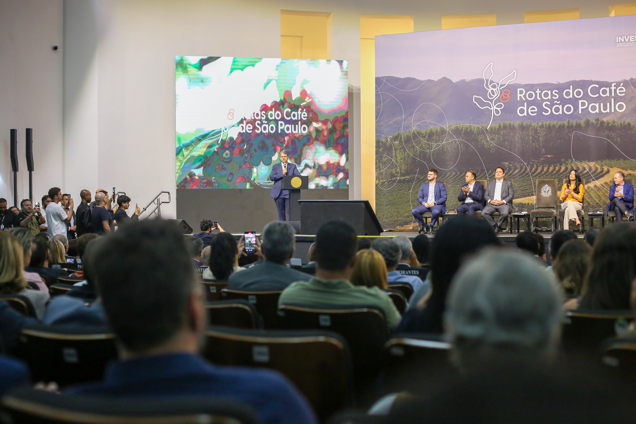 “O lançamento de hoje tem significado histórico. São Paulo se desenvolveu às margens dos trilhos dos trens, que chegavam ao interior para levar o café até o Porto de Santos. Dali nasceram as ferrovias e as cidades ao redor delas. Celebrar as Rotas do Café é celebrar a história do estado de São Paulo e a aliança entre produtores, indústrias e cooperativas para contar essa história e mostrar que São Paulo tem o melhor café do Brasil”, afirmou o governador Tarcísio de Freitas. “Estamos muito focados no desenvolvimento das nossas vocações para fomentar e desenvolver os arranjos e cadeias produtivas para ganhar eficiência do ponto de vista logístico, diminuir a burocracia e tornar o estado mais digital”, destacou Tarcísio.