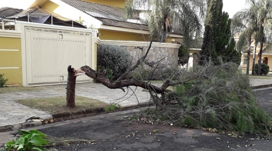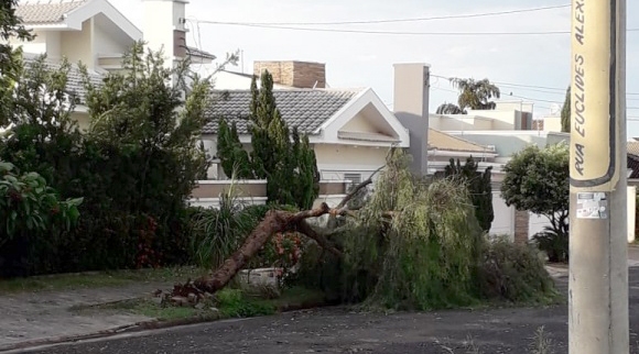 O vento também derrubou galhos e várias árvores em muitos pontos da cidade. A prefeitura realizou uma reunião por volta das 9h30 para tratar do assunto.