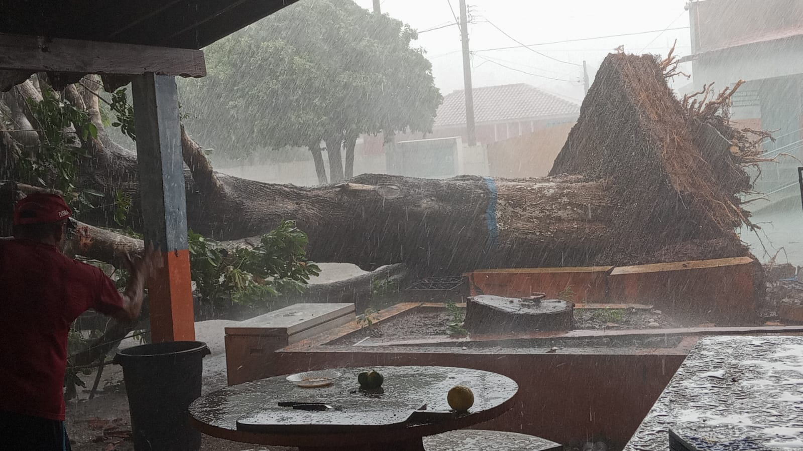 Queda de árvore em Santa Mercedes (Reprodução/Jorge Zanoni).