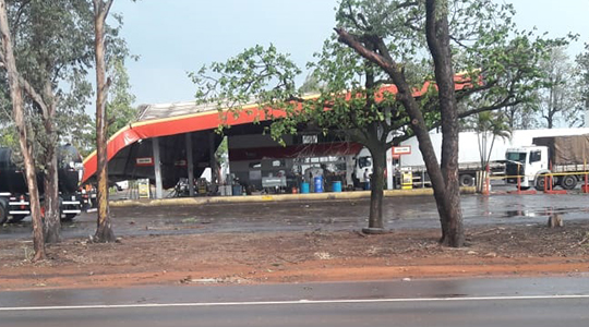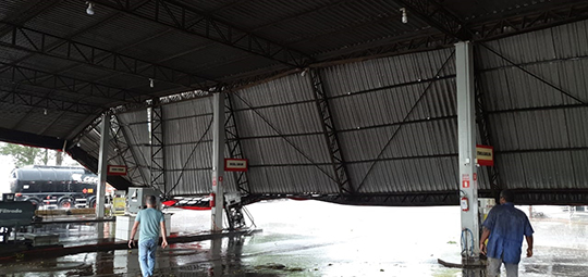 Temporal derruba cobertura de posto de combustÃveis na SP-425