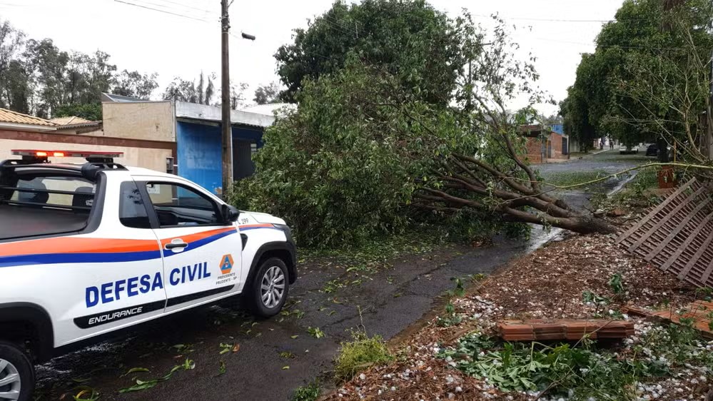 Conforme a previsão dos serviços de meteorologia e da Defesa Civil, um temporal atingiu a cidade de Presidente Prudente na tarde desta sexta-feira (11), com ventos fortes e chuva de granizo. A Defesa Civil Municipal foi acionada para atender as regiões afetadas. A chuva de granizo ficou mais concentrada na região norte da cidade, entre o Residencial Daiane e o distrito de Montalvão.
