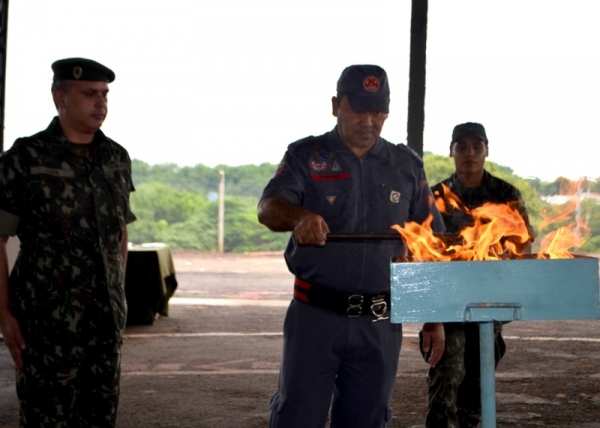 A incineração foi realizada pelo militar mais antigo presente, subtenente Evandro Nakazima Baldo, comandante do Corpo de Bombeiros de Adamantina. A cerimônia foi presidida pelo
