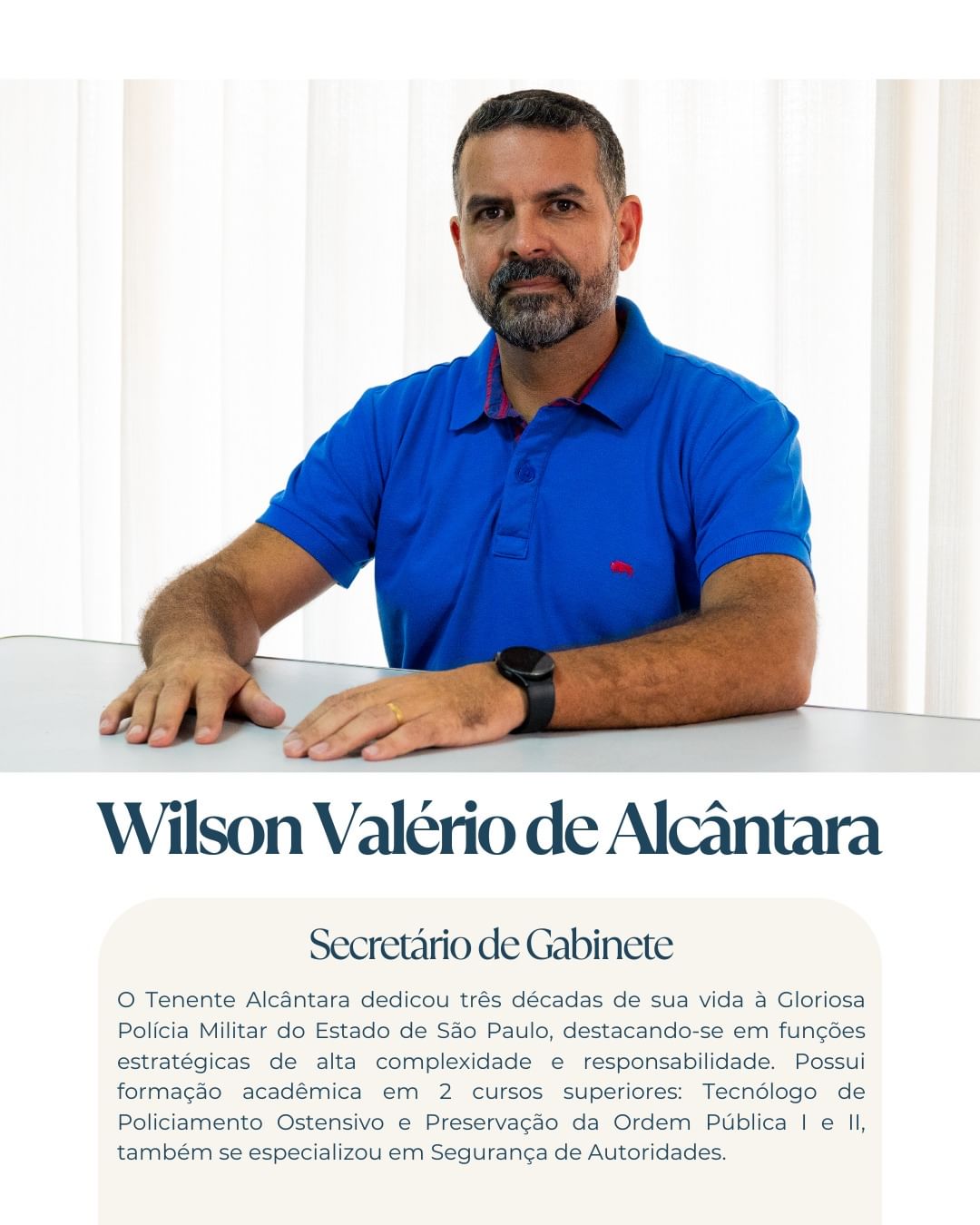 O tenente Wilson Valério de Alcântara dedicou três décadas de sua vida à Gloriosa Polícia Militar do Estado de São Paulo, destacando-se em funções estratégicas de alta complexidade e responsabilidade.