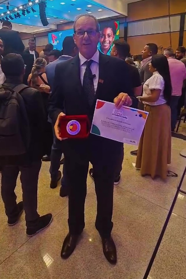Em Brasília o novo gestor municipal de Adamnatina recebeu troféu e certificado do Selo Nacional de Compromisso com a Alfabetização MEC 2024, conquistado ano passado pela gestão municipal anterior.