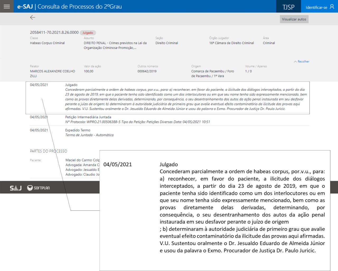 Uma decisão da 16ª Câmara de Direito Criminal do Tribunal de Justiça do Estado de São Paulo (TJ-SP), nesta terça-feira (4), julgou parcialmente favorável o pedido de habeas corpus em favor do ex-prefeito de Pacaembu, Maciel do Carmo Colpas, que está preso preventivamente desde 20 de fevereiro, pela Operação Atoleiro.
