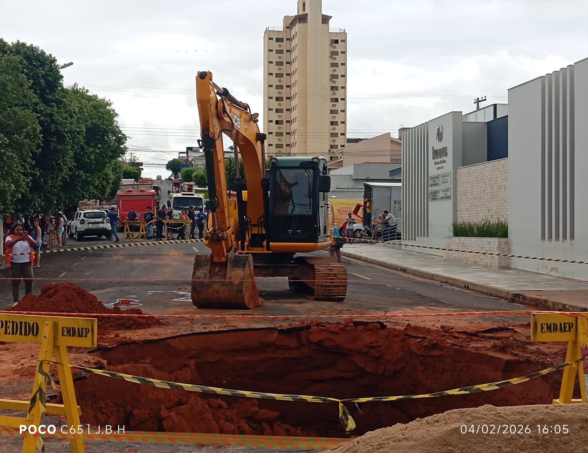 A Polícia Militar registrou a ocorrência e a Polícia Científica esteve no local para a realização da perícia técnica, que irá apurar as circunstâncias do acidente. Informações preliminares indicam que a escavação tinha cerca de três metros de profundidade e aproximadamente cinco metros de largura, em um ponto que apresenta problemas recorrentes há longo tempo.