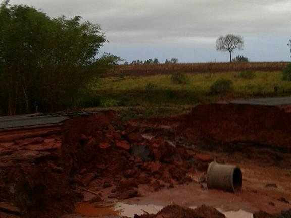 As chuvas na noite de ontem provocaram a interrupção no trânsito de veículos pela SP-294 (Rodovia Comandante João Ribeiro de Barros), no quilômetro 663, em Tupi Paulista. O local está com obras em uma ponte e a circulação pelo trecho já era feita por desvio há mais de um mês, como noticiou o SIGA MAIS (reveja aqui).